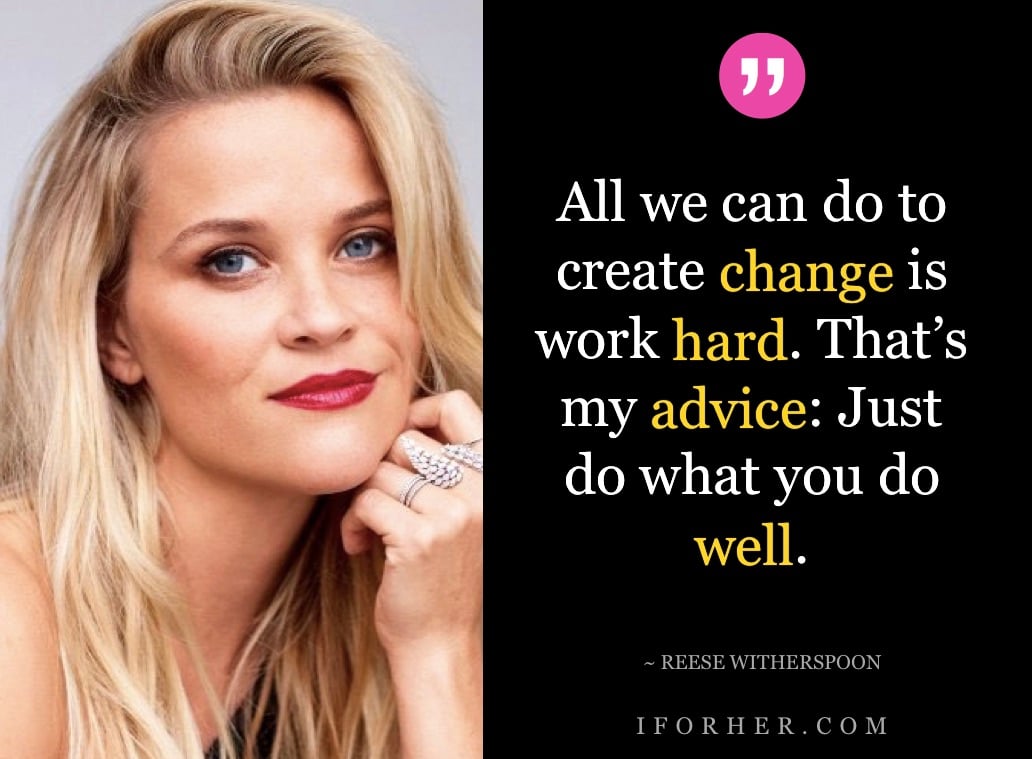 All we can do to create change is work hard. That’s my advice: Just do what you do well. ~ Reese Witherspoon